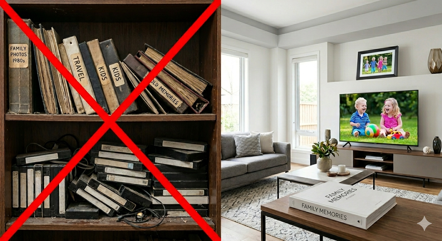 Before you can truly enjoy your memories, they need to be accessible. Many families still have printed photos, slides, negatives, film reels, VHS tapes, and camcorder tapes that are slowly fading with age. Converting these to digital is the foundation of everything that comes next.