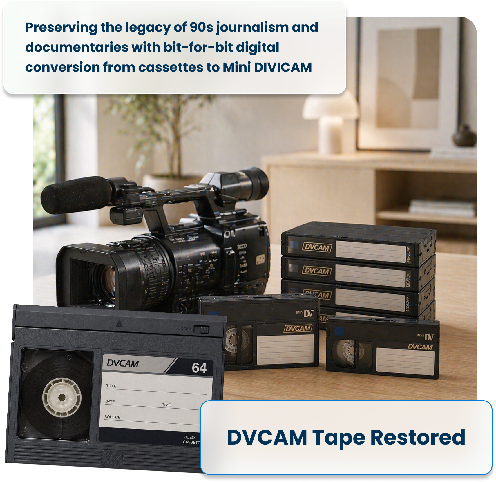 Documentary footage, event recordings, news packages, and corporate video — DVCAM tapes often contain the original master recordings of important work that deserves proper preservation.