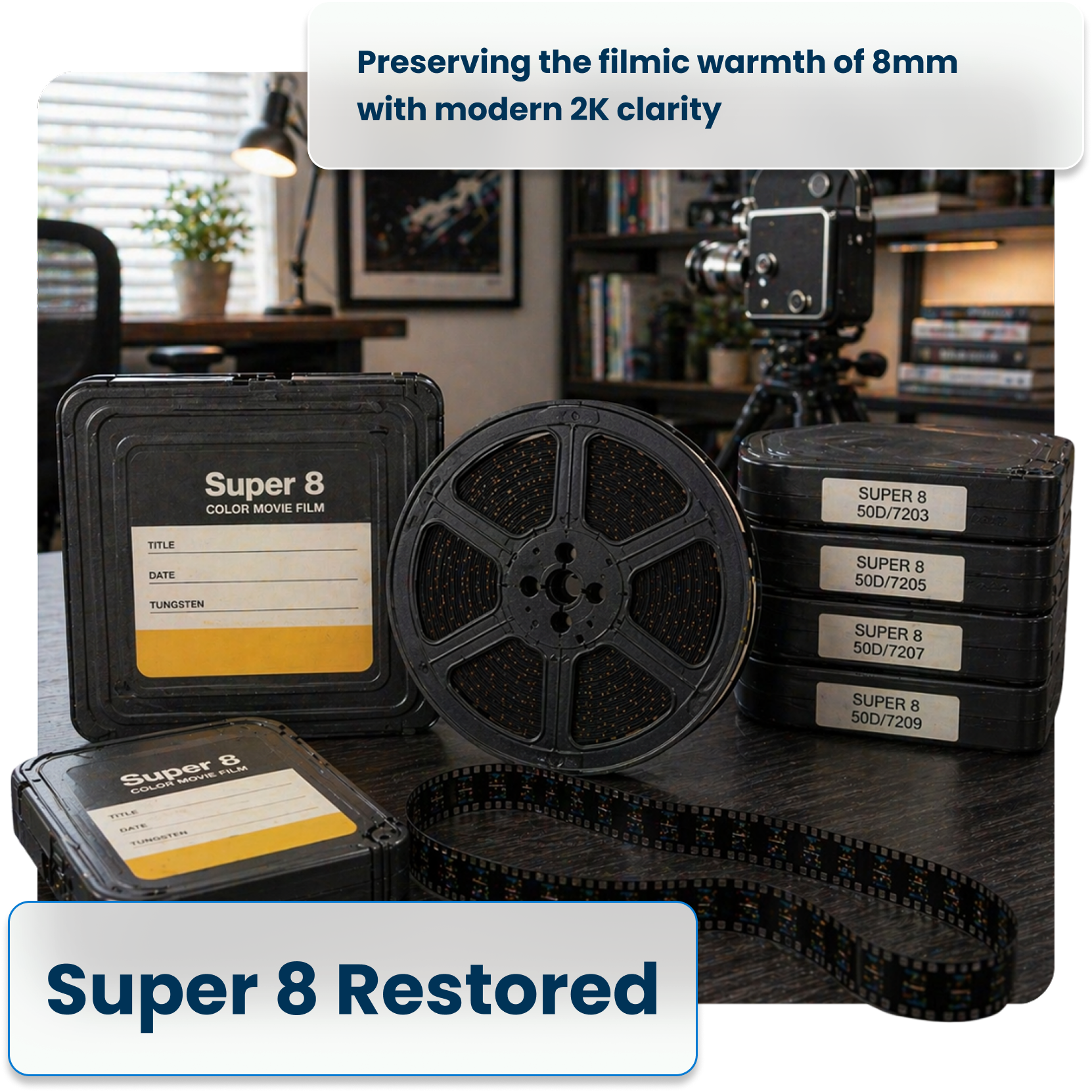 We recommend 2K for most Super 8 transfers — it captures the full detail of the film frame and provides a beautiful, future-proof digital master. 4K is available for the highest-quality archival result or for large-screen projection use.